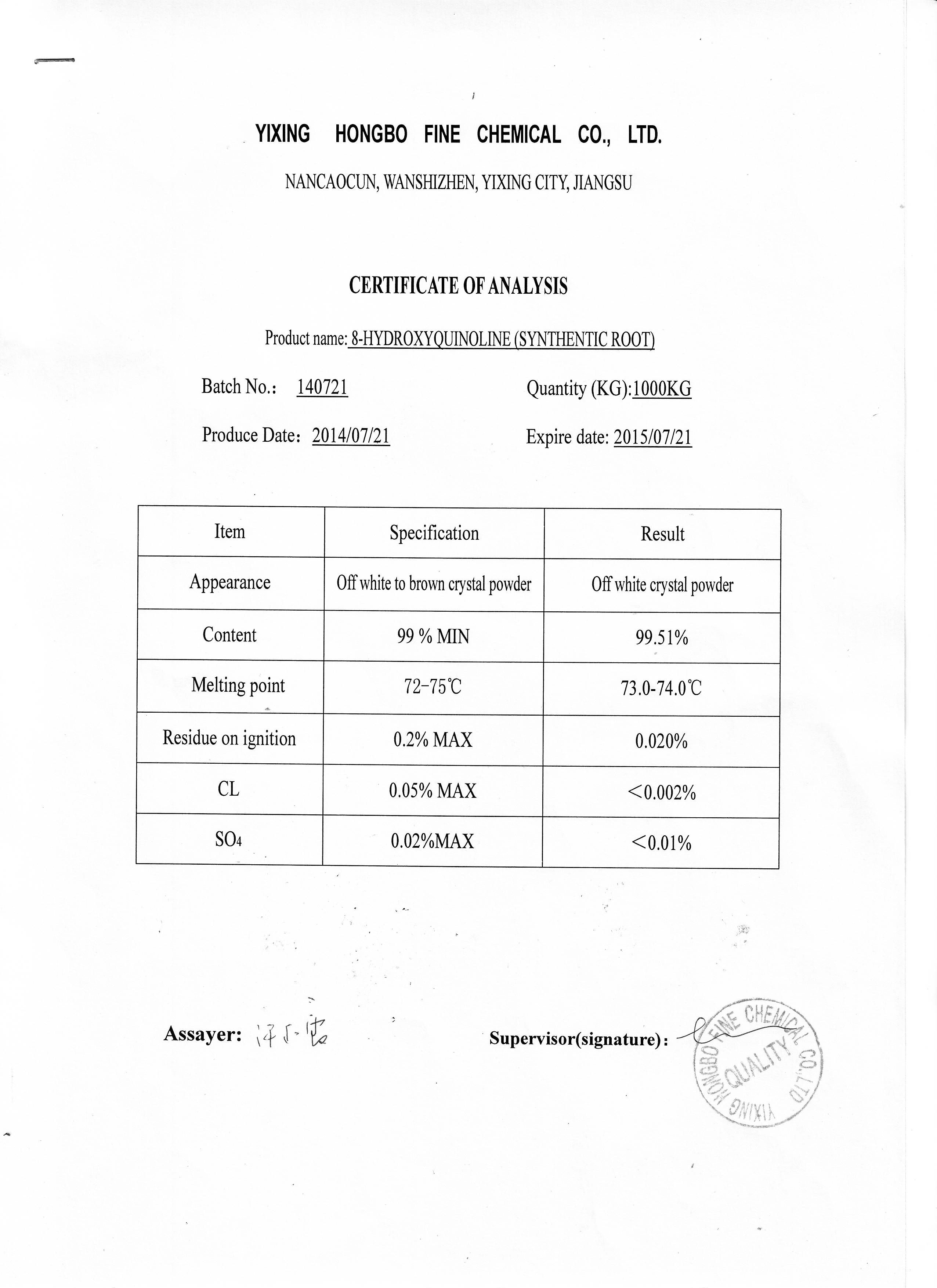 8-HYDROXYQUINOLINE( CAS No.148-24-3)